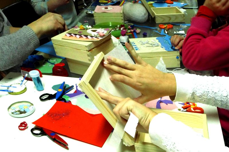 - drewniane pudełka zdobione np. techniką decoupage’u